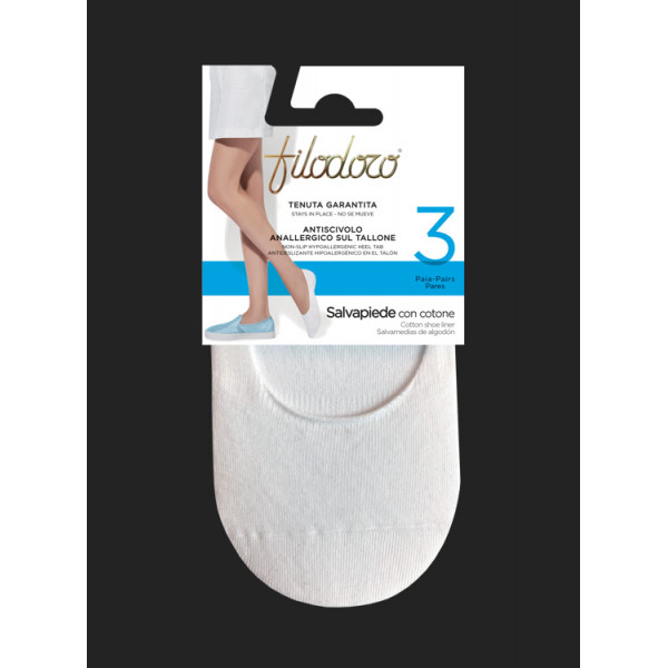 Salvapiede in cotone leggero Filodoro per uomo, con silicone antiscivolo sul tallone. Confezione da 3 pezzi. Disponibile nei colori: Bianco, Nero e Nudo.
